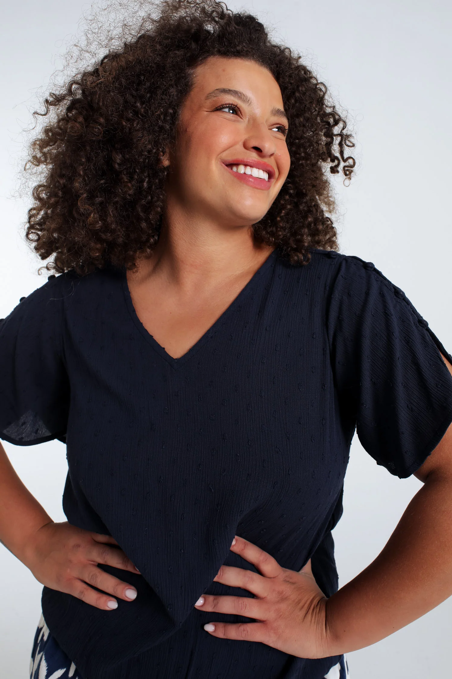 Ontdek deze elegante effen blouse van 100% viscose, perfect voor elke gelegenheid. De blouse heeft een verfijnd plumetis detail en korte mouwen met decoratieve knopen, wat zorgt voor een stijlvolle uitstraling. Dankzij de V-hals en elastische onderkant zit hij comfortabel en flatterend. Met een lengte van 72 cm in maat 48, combineert deze blouse moeiteloos comfort en klasse. Neem uw gebruikelijke maat voor de perfecte pasvorm.