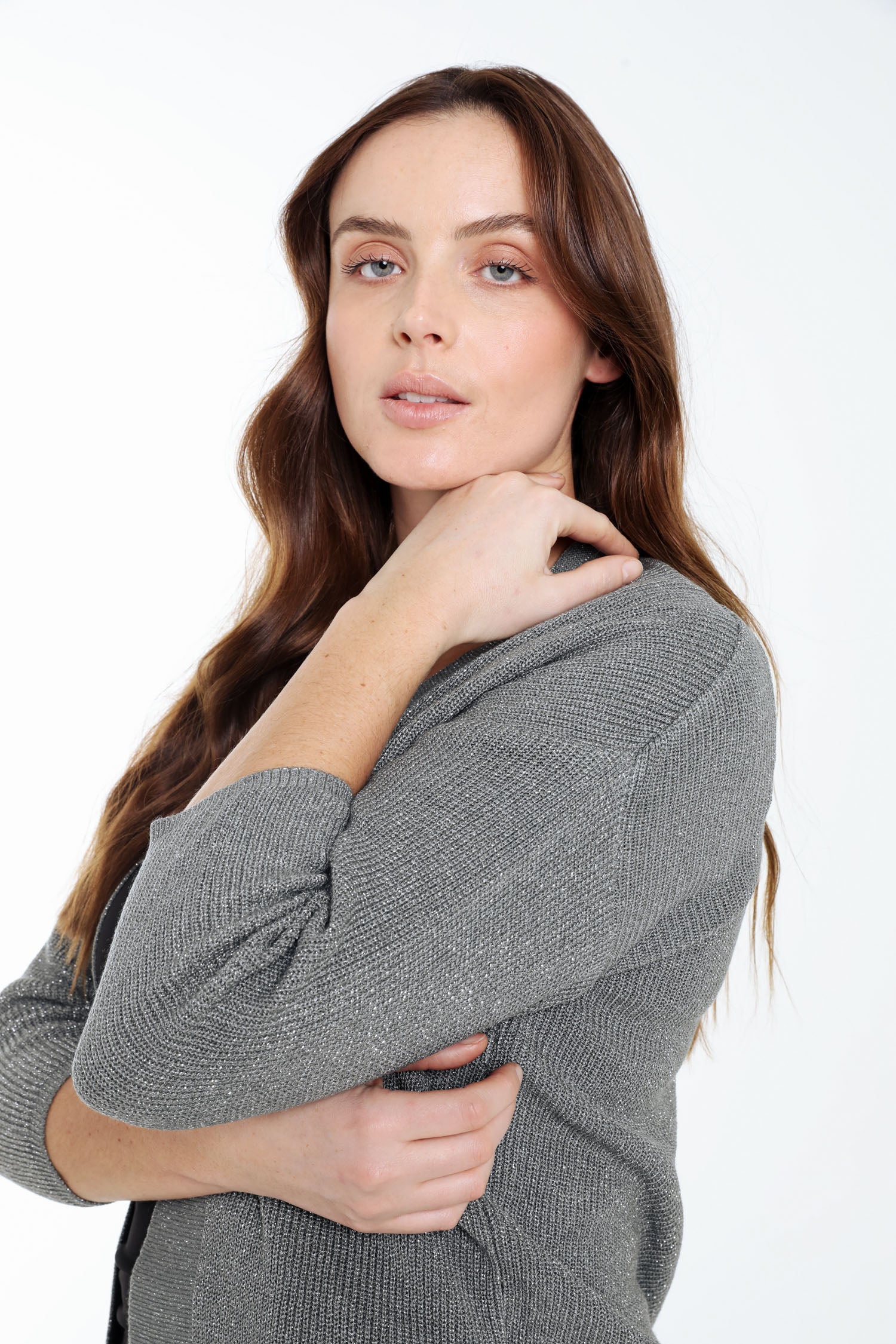 Ontdek deze korte, effen cardigan in zacht viscose met een subtiele lurex glans. Met 3/4-mouwen en een recht model biedt hij een elegante, tijdloze look zonder sluiting. Perfect voor elke gelegenheid, met een comfortabele lengte van 60 cm (maat 48). Kies je gebruikelijke maat en voeg een sprankje stijl toe aan je garderobe.