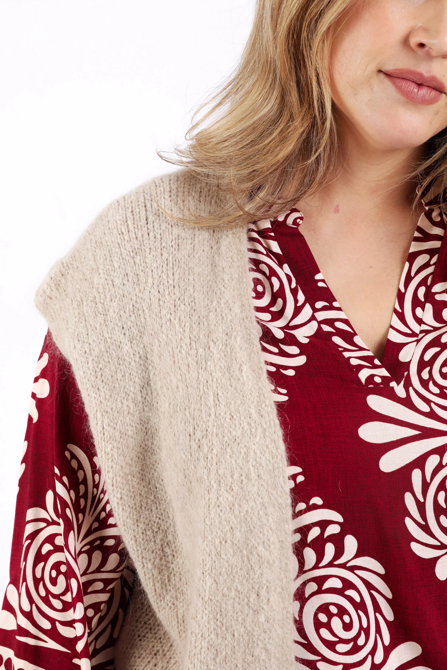 Ontdek het stijlvolle effen gilet van mohair, perfect voor een moderne, mouwloze look. Dit gilet zonder sluiting valt op door zijn zachte materiaal en comfortabele pasvorm. Met een lengte van 66 cm (maat 48) is het een veelzijdige toevoeging aan elke garderobe. Kies uw gebruikelijke maat en geniet van tijdloze elegantie en draagcomfort.