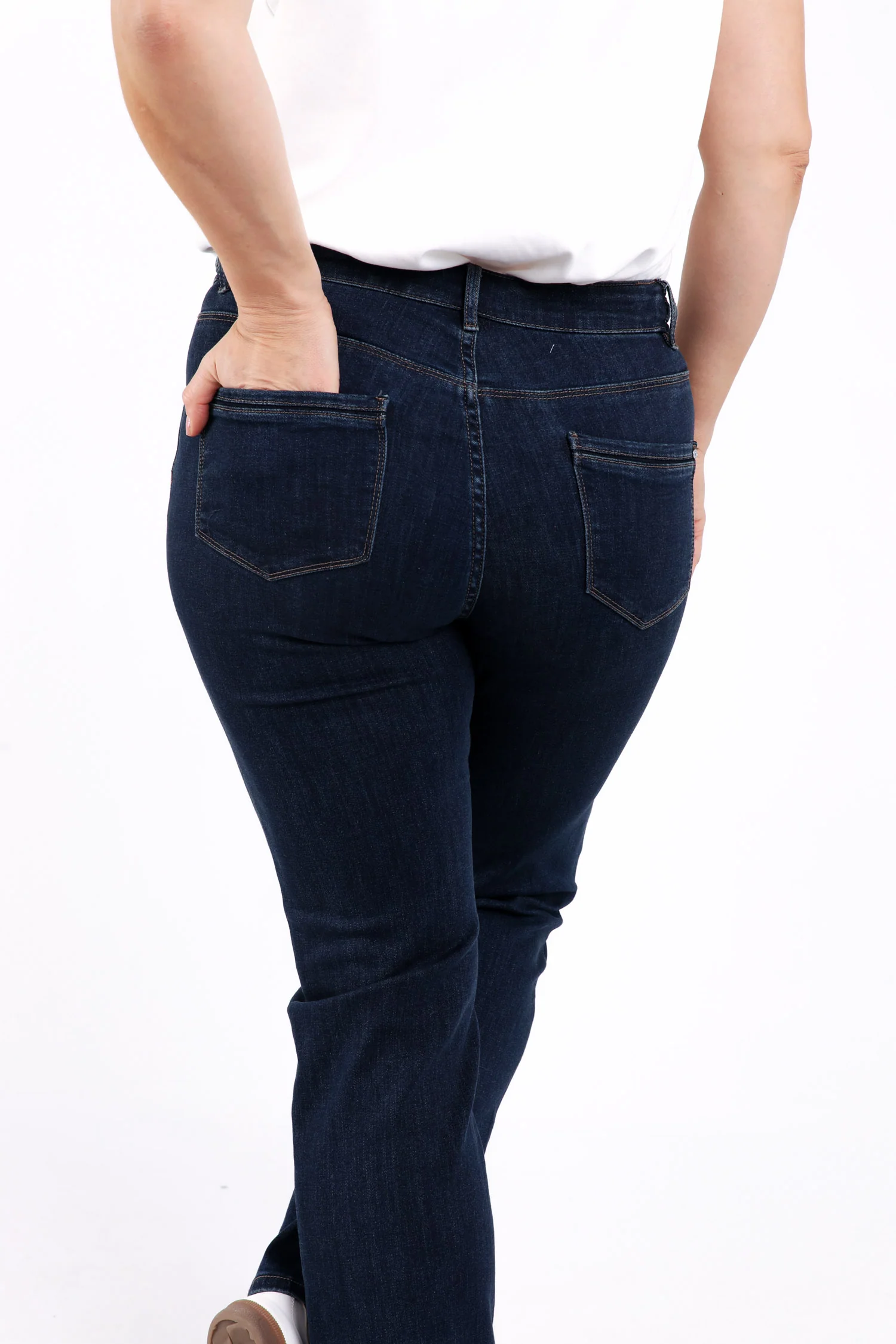 Ontdek de jeans Mia recht L32, een stijlvolle must-have met een rechte pasvorm en binnenbeenlengte van 82 cm. Deze comfortabele jeans is voorzien van praktische zakken en een uniek vlecht- en strassdetail voor een modieuze touch. Perfect voor elke gelegenheid, draag je jouw gebruikelijke maat voor de beste fit. Geef je garderobe een eigentijdse upgrade met deze trendy jeans.