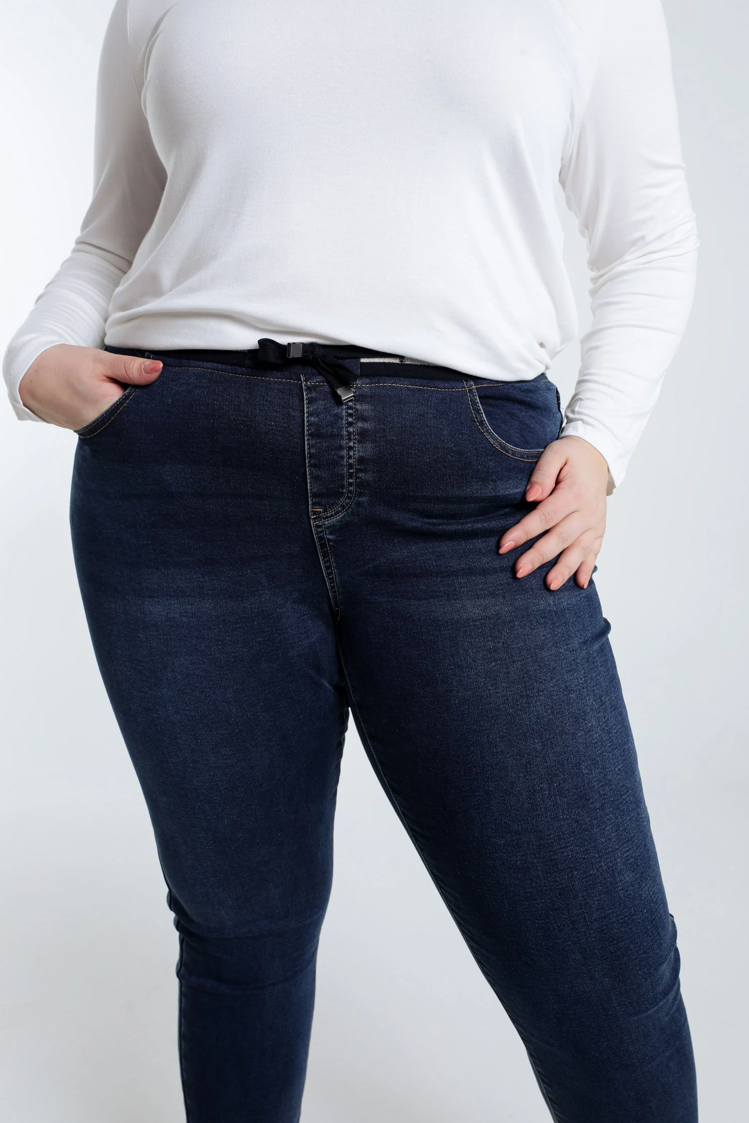 Slim 7/8-jegging in jeans met sportieve riem